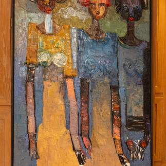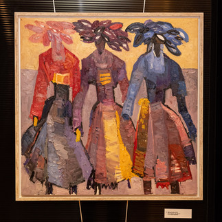 The exhibition featured IYANIWURA 3 (2024, 228 × 152 cm) and ỌMỌ OLOGO (Girl Destined for Glory) (2024, 198 × 91 cm)—works that capture the quiet strength and grace of women who, despite facing immense challenges, maintain the calm orderliness that defines traditional African village life.