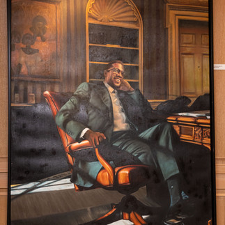 His Icons in the White House series, which went viral in 2021, was represented alongside more recent masterworks including Chinua Achebe (2023, 91 × 149 cm) and Malcolm X: Renewal of Hope (2023, 138 × 187 cm). These are not portraits—they are visual poetry that speaks directly to the conscience, depicting the daily experience of human life with pulsating emotional appeal.