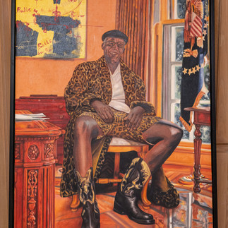 Works including Warrior of Circumstance (2024, 5 × 7 ft) and Less Fighting, More Dancing (2024, 5.1 × 7.1 ft) demonstrate Ogulu's ability to bridge past and present, creating narratives of hope and progress while acknowledging historical trauma.